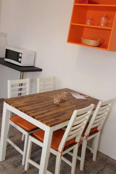 Ebenso steht Ihnen ein Esstisch mit 4 Stühlen zur Verfügung.